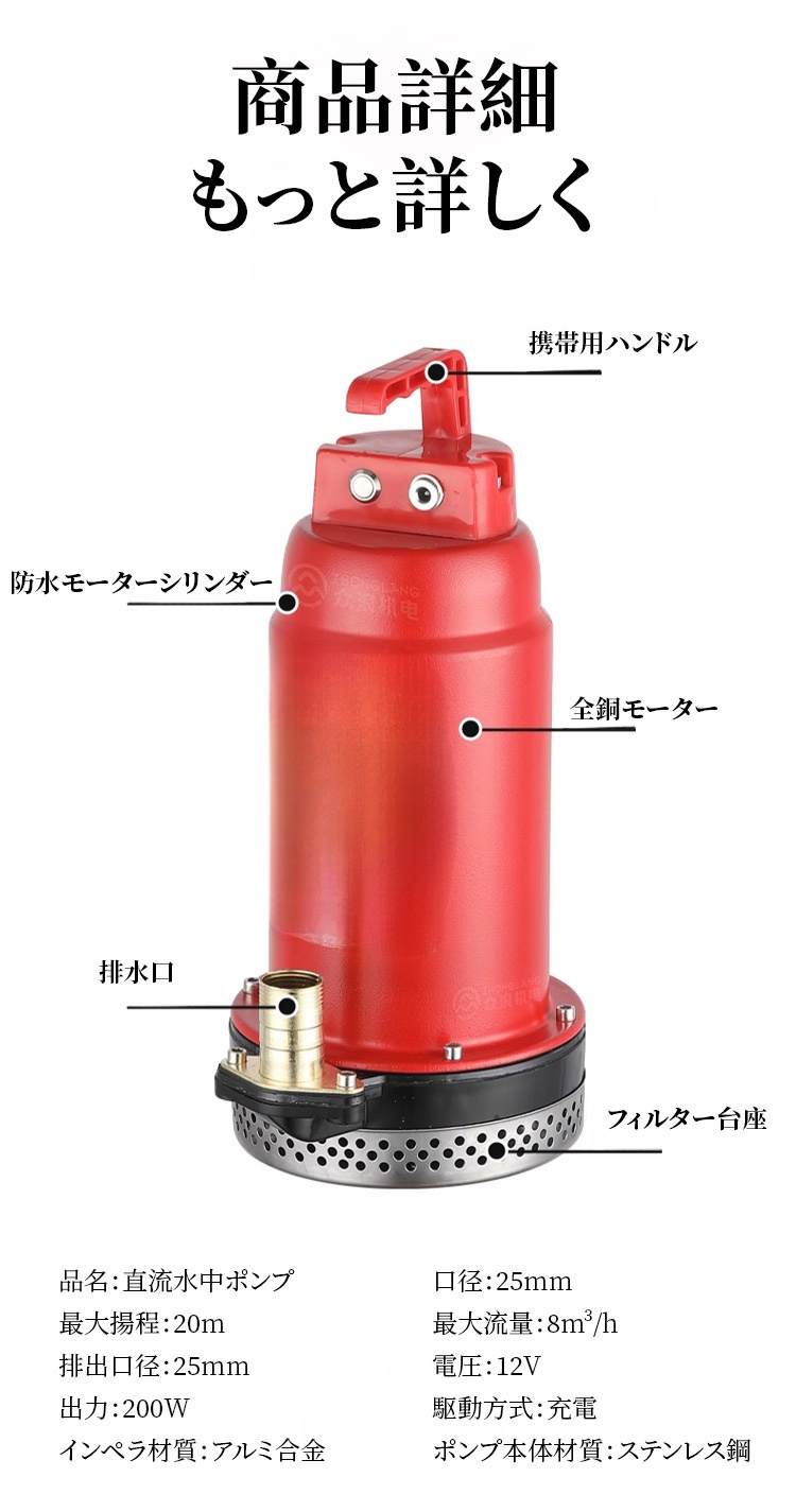 【30倍強圧】大出力直流潜水ポンプ