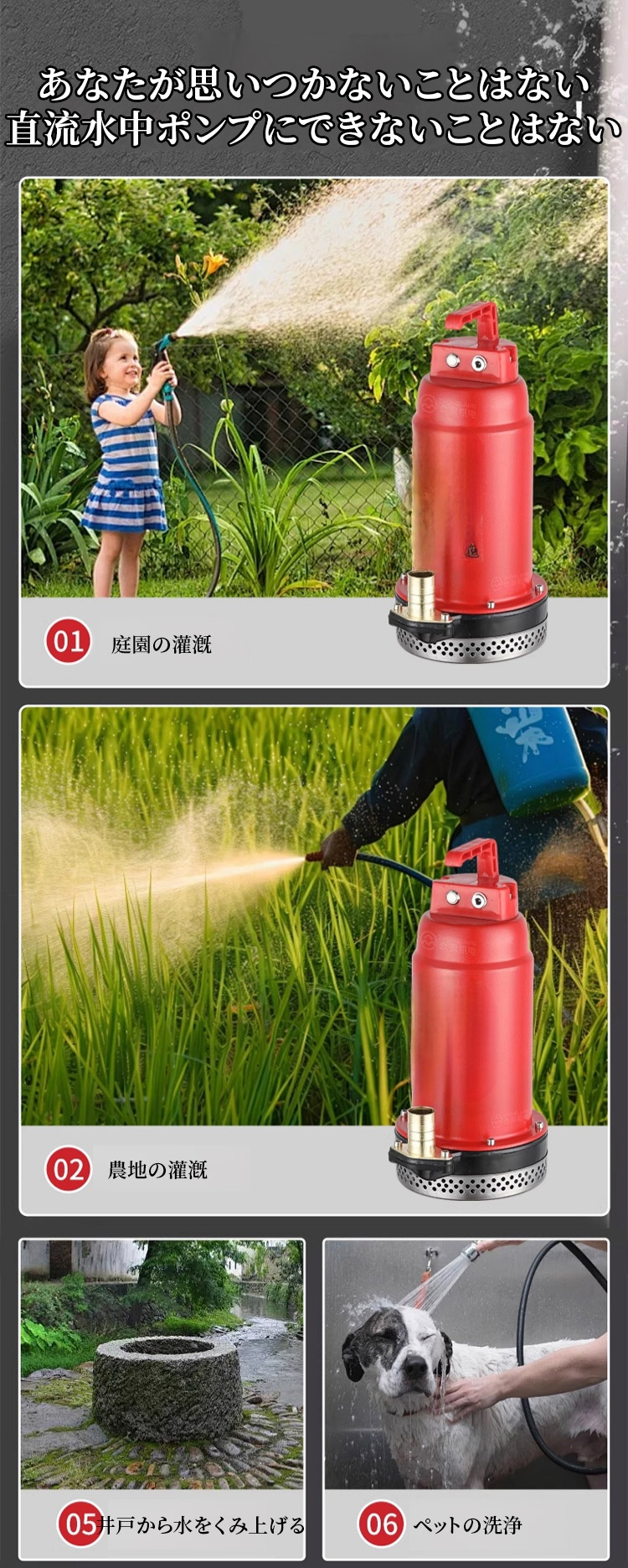 【30倍強圧】大出力直流潜水ポンプ